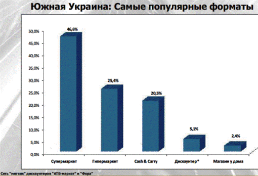 Диагр. 1. «Самые популярные форматы магазинов самообслуживания в Южной Украине, %»